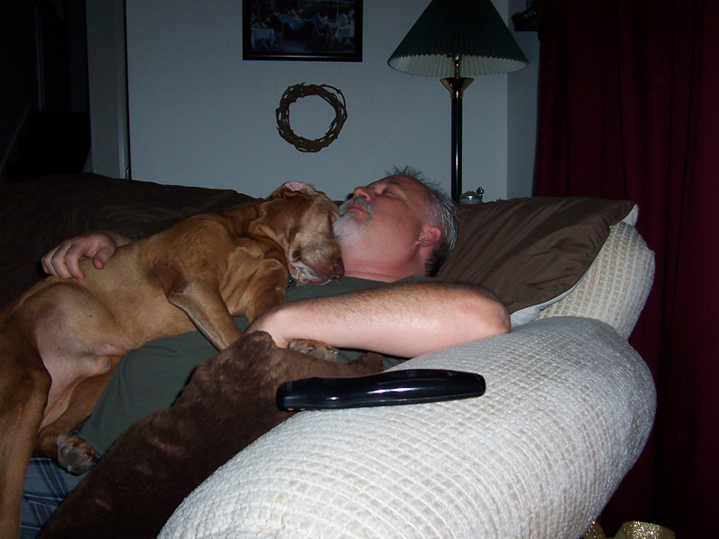 Since we all lost Tucker, Nancy and I have been a mess, the slightest thought of Tucker, which are always there since we took him everywhere, would bring tears to our eyes, the mention of the loss to a friend or loved one would bring all to tears, the hearts in this house were torn apart. We tried to make sure that Bodi’s life was interrupted as little as possible, not wanting to bring grief on him for something he had no hand in… But Bodi was feeling the hurt as well, while around the house he has been as clingy as possible, following us from room to room, waiting for us outside the door if we need a little privacy. Even stepping outside to the back yard, Bodi has calmed his hunting instincts down a few notches, and at times he would make a quick beeline, do his thing, and then run right back to stand with us on the back steps.