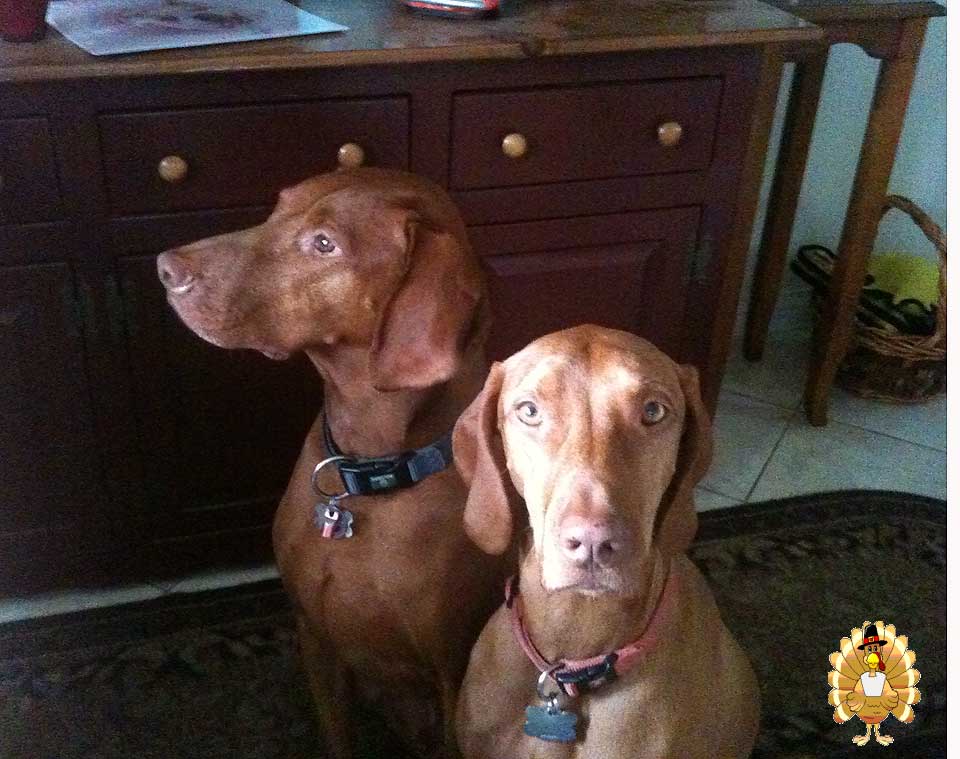 So let’s talk turkey… Okay mom & dad… We want turkey! We want turkey! We want turkey! That’s what Thanksgiving is all about for us. It’s all about the bird. That big, juicy, yummy bird that mommy spends HOURS preparing for us every year (a BIG KUDOS to mommy for doing this JUST for us!) Wow… she is making that bird just for us and no body else gets ANY! That’s right! When that bird comes out of the oven.. we are going to be on that thing like a buzzard on a gut wagon………… huh? Well… we’re not even sure what that means.. but if it has anything to do with MEAT.. we’re on it!!